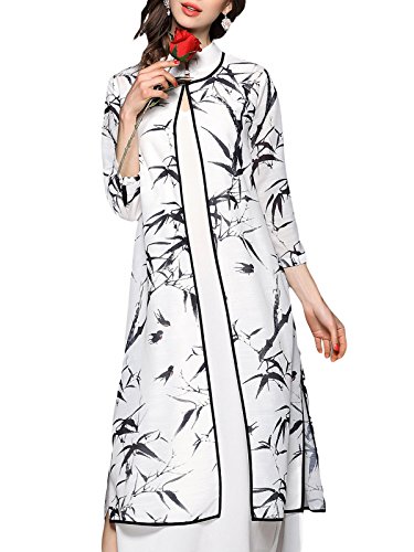 -. Title : MissLook Women's Two Piece 3/4 Sleeve Stand Collar Leaf P.R.Int Vintage Maxi Dress With Coat