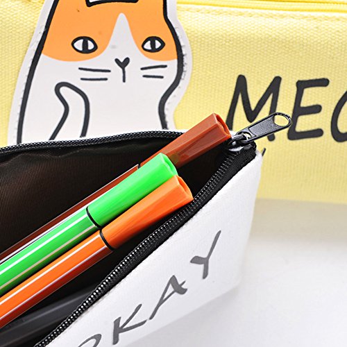 Creative Cute Cartoon Zipper Pencil Bag Canvas Triangle Pencil Case Coin Purse Pouch Pencil Holder Makeup Organizer Stationary Gift