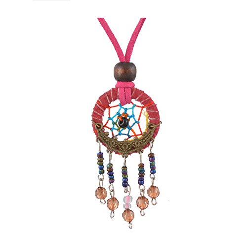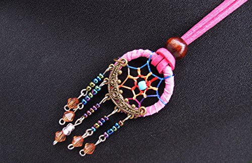 Fuchsia Dreamcatcher Necklace Handmade Pendant Dream Catcher Korea Velvet Jewelry(Pink Dream)