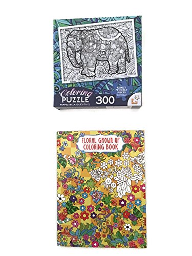 -. Feature : One Elephant Coloring Puzzle 300pc. Size 18in. x 24in. (46cm x 61cm) / One Adult Coloring Books (23 Pages Each) - Floral / Bundle of 2