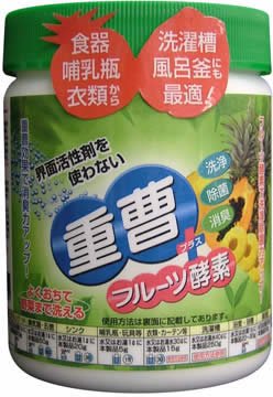 "Sodium bicarbonate + fruit enzyme" added pineapple and papaya, enzymes extracted from two kinds of fruits, as it is convenient usage of sodium bicarbonate.