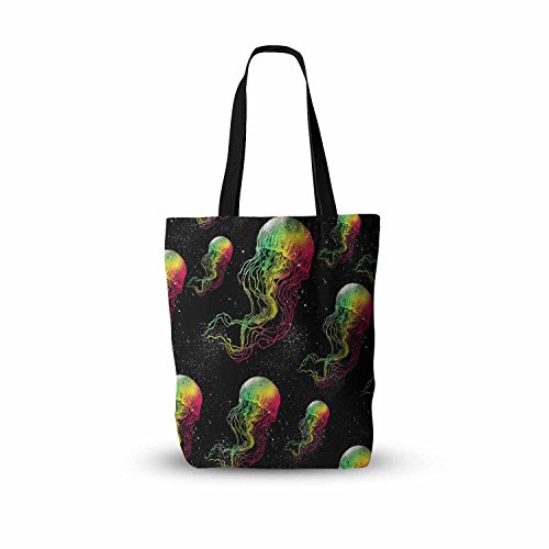 KESS InHouse BarmalisiRTB "Rainbow Jellyfish" White Black Digital Everything Tote Bag, 16" x 16", Multicolor