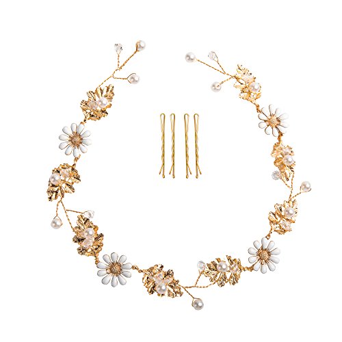 -. Feature : サイズ:長34.9cm 重量:26g カラー:ゴールド / 本体の材質には、高品質の人工パールや人工クリスタルを使用しています、高級感が溢れます。 / 簡単に適度なカーブ・角度の調整が出来ます。ヘアピンを使用して髪に固定するタイプです。小さなデージーがたくさん寄せてあるこんもりとした可愛らしい雰囲気があります。 お花とリーフの素敵なカチューシャ。 / ヘアピン付き、両端のリンクにヘアピンをお好きな位置につけて、アレンジ方法をお楽しみに! / 結婚式や披露宴や二次会ではもちろん、パーティーやイベントなどにもピッタリです。 彼氏・彼女のカップルで、大切なご家族や友達へのお祝い、バレンタインデーやホワイトデー、誕生日プレゼント用にもオススメ。