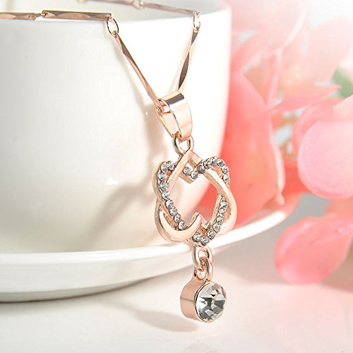 [Scan Tiffany] s? TIFFANY & oC. Ladies popular double open heart and cubic zirconia necklace pendant jewelry pouch set (Rose Gold) [parallel import goods]