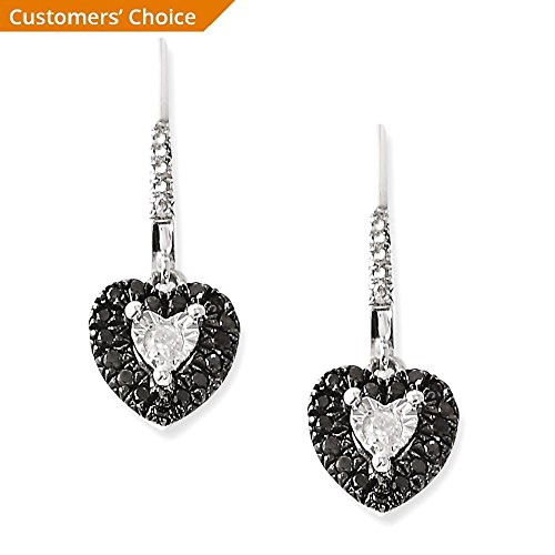 ICECARATS DESIGNER JEWELRY 925 STERLING SILVER BLACK WHITE DIAMOND HEART POST STUD DROP DANGLE CHANDELIER EARRINGS