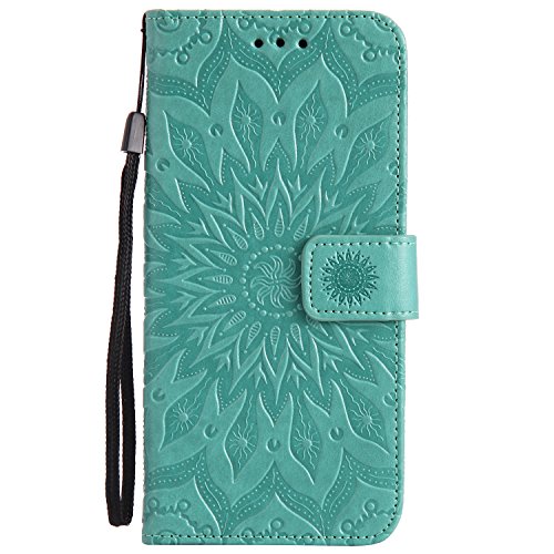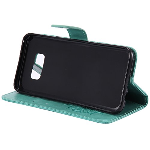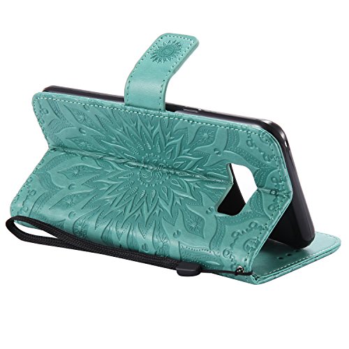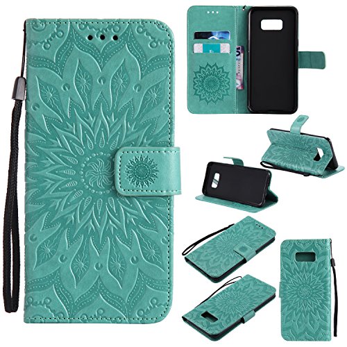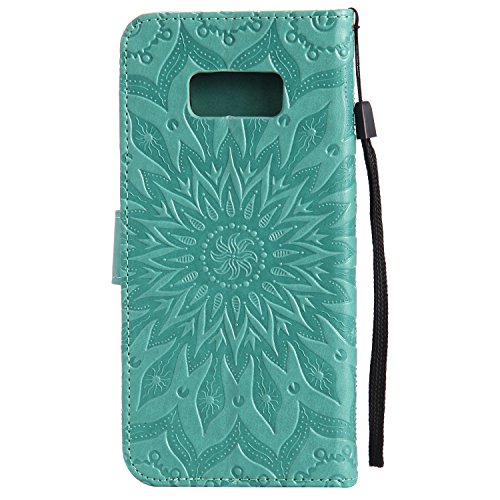 Galaxy S8 Wallet Case,A-slim Totem Sun Floral Flower Pattern Embossed PU Leather Magnetic Flip Cover Card Holders & Hand Strap Wallet Purse Case for Samsung Galaxy S8 - Green