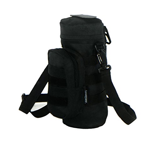 -. Binding : Sports -. Brand : East West U.S.A -. Feature : Dimensions: 4.5L x 4.5W x 10H in. / Specialized for use with water bottles / Zippered front pocket / Durable polyester construction / Choose from available options -. Label : East West USA -. Manufacturer : East West USA -. Model : RT521-P -. MPN : RT521 - BLACK -. PackageQuantity : 1 -. PartNumber : RT521 - BLACK -. ProductGroup : Sports -. ProductTypeName : SPORTING_GOODS -. Publisher : East West USA -. Studio : East West USA -. Title : East West U.S.A RT521 Tactical Water Bottle Pouch Military Molle Pack Gear Waist Back Pack