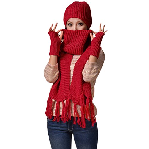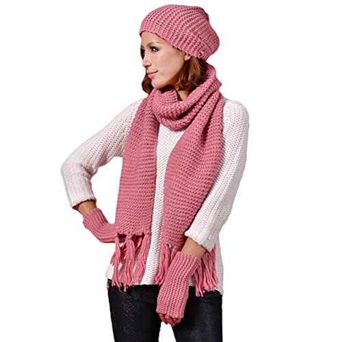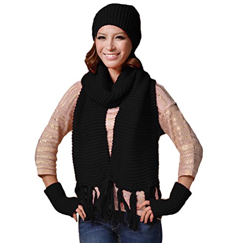 Binding : Apparel Product Description Description: 1.Soft, warm, cozy cable knit. 2.Makes you a charming and beautiful view in the winter. 3.Scarf size: 151 * 29cm; Hat size: 29 * 21cm;Gloves size:19.5 * 8.5cm. 4.Nice gift for your sweetheart in the snowy days. 5.Easy to match perfectly suited for dressy or casual outer wear. Product Specification: 1.Quantity: 1 2.Color: As the picture shows 3.Material: Wool 4.Size:one size Note: 1.Manual measurement may be some deviation1-2cm, hope to understand, please refer to product-based. 2.Because each computer display different colors, may be related to physical and picture, hope to understand. Package Content: (Send without retail package) 1* matching knit hatscarfgloves set