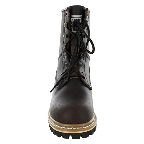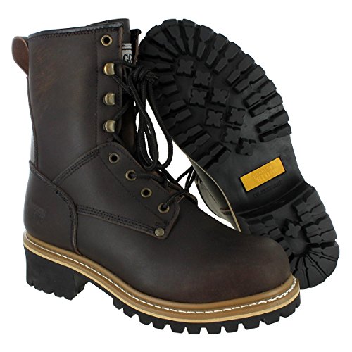 -. Feature : Shock Absorbent / Steel Toe / Genuine Brown Leather / Aggressive Tread Pattern / 3 Lace Hooks per Side for Lacing Securely