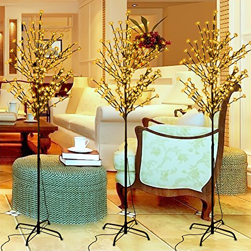 Led Tree Light, Lighted Cherry Blossom Flower Tree 208leds 1.8m 6ft Warm White Garden Led Floral Lights for Christmas Tree, Indoor, Outdoor, Garden, Home, Wedding, Party, Holiday Decorations