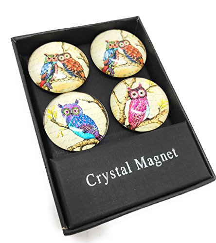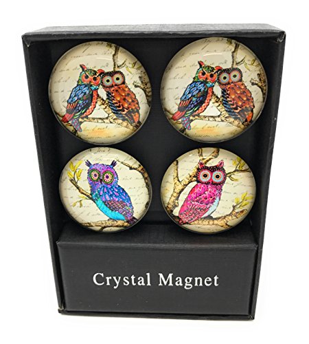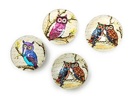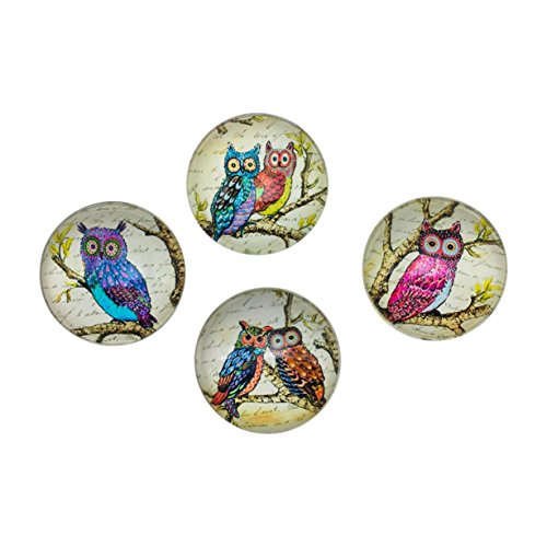 Funky Owl Print Glass Domed Magnets by Value Arts, Set of 4 Assorted