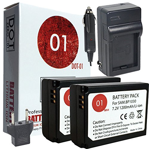 2x DOT-01 Brand 1200 mAh Replacement Samsung BP-1130 Batteries and Charger for Samsung NX1000, NX1100, NX200, NX210, NX2000, NX300, NX500 Digital Camera and Samsung BP1130