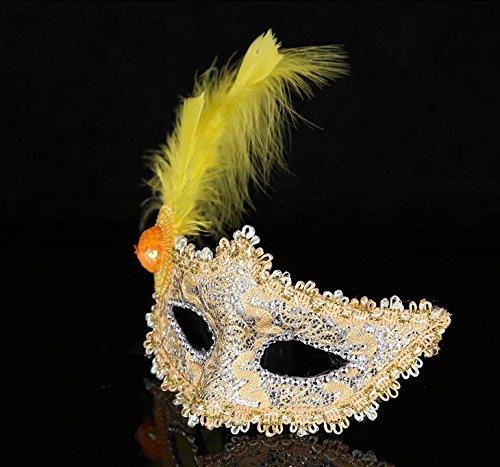 Side Face Diamond Lace Feather Mask Venetian Costume Mask Halloween Mask (Gold)