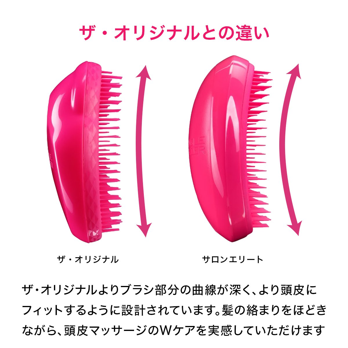 ●ブラシ中央部分の曲線は、頭の形とブラシの頭皮へのあたり、流れを綿密に計算したデザインです。