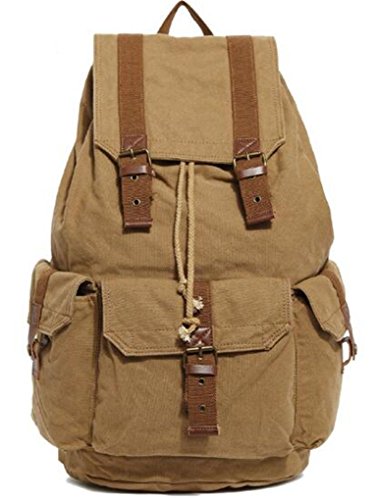 -. Feature : COMPARTMENT - Two side pockets, one front pocket, one large compartment with two small compartments inside. / MAIN COMPARTMENTS - The spacious main compartment with drawstring closure under flap and high quality zipper head offers plenty of space to hold a number of things such as books, tablet, camera or other important belongings for all day use conveniently. / MATERIAL - Leather trims and zips, straps and durable canvas fabrics. Made with premium quality high density durable canvas fabric and PU leather, this sturdy bag features a classic yet stylish button closure flap over design, vintage brass hardware accents, adjustable and comfortable shoulder straps, and multiple pockets to keep you organized.School bags main flap features magnetic closures to facilitate quick and easy access.