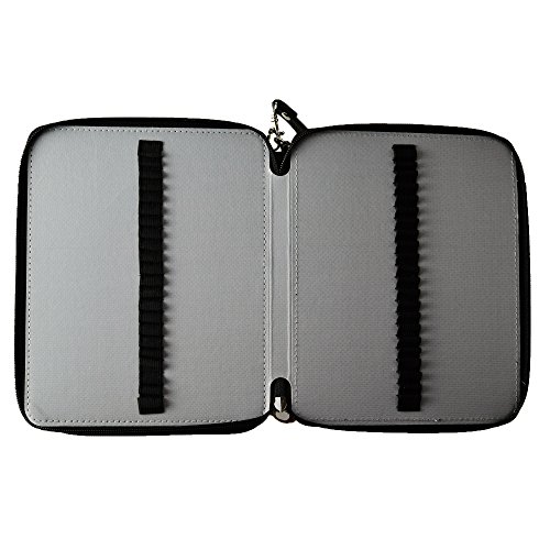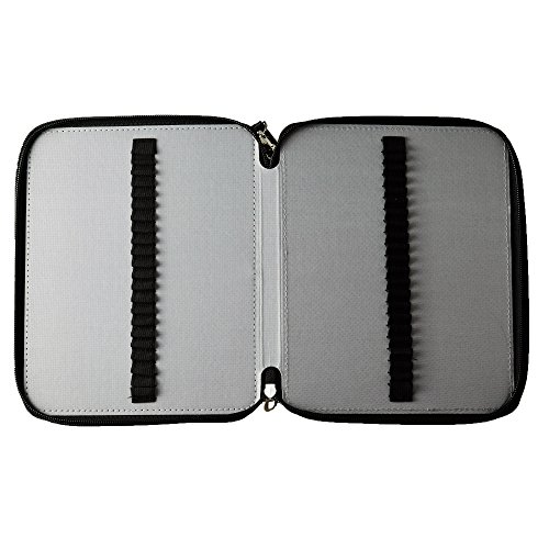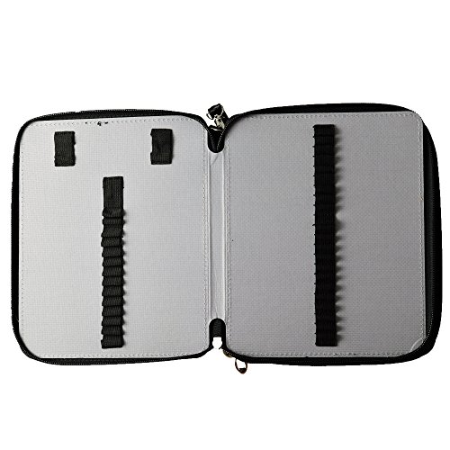 LARGE CAPACITY - 127 slots designed including 124 pencil slots and 3 larger slots for eraser or sharpener, each pencil has its own individual strap.3 layers design: each one has two sides, roomy for all your stationary.