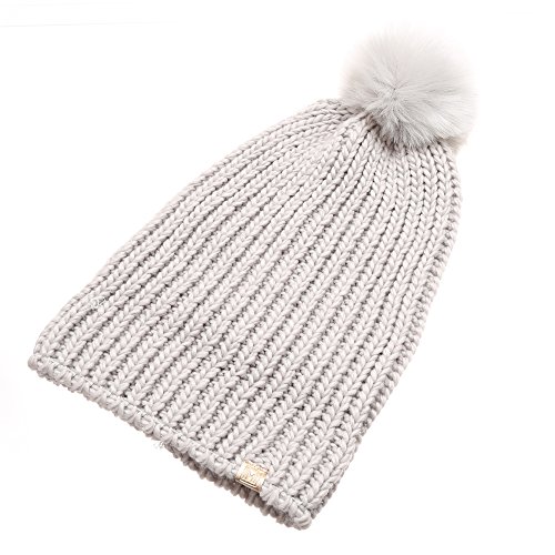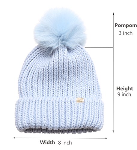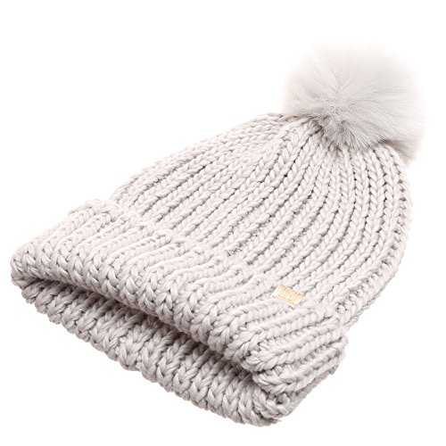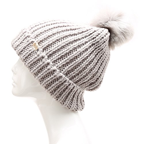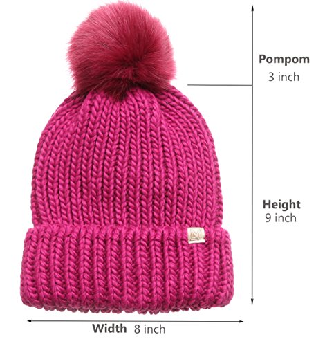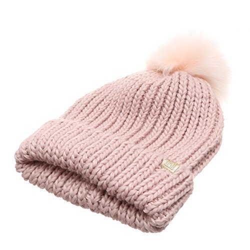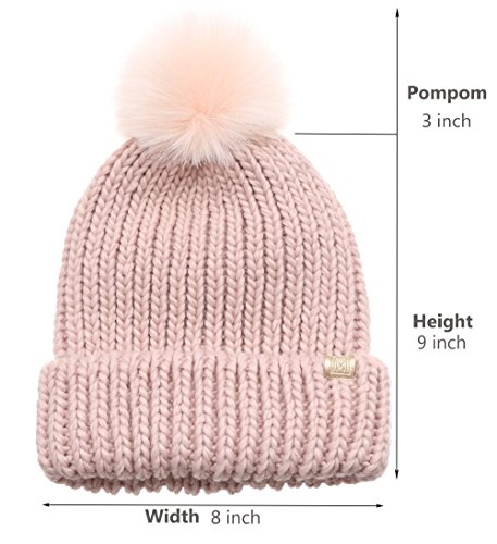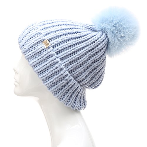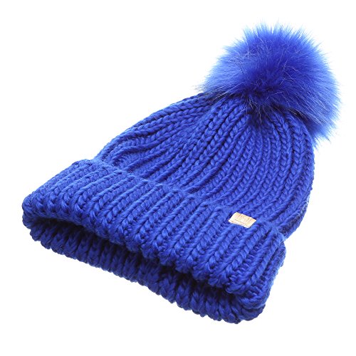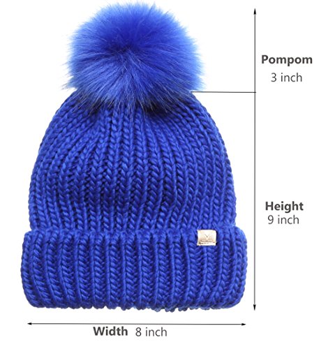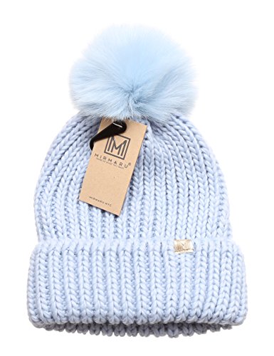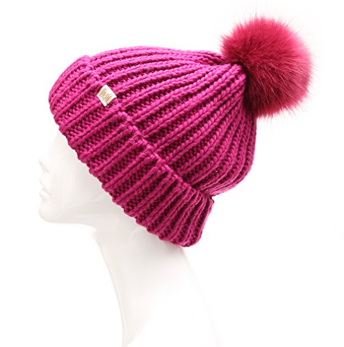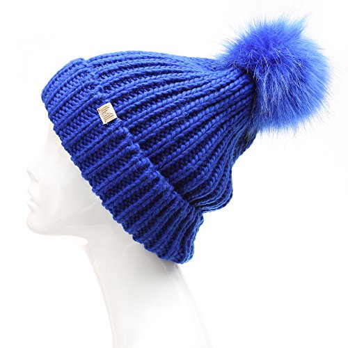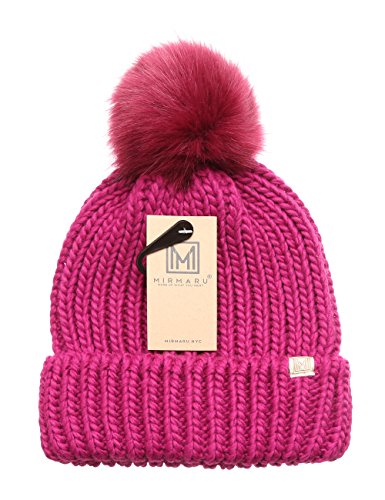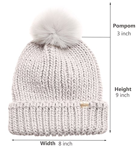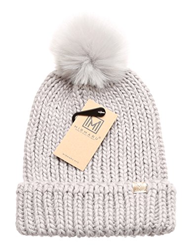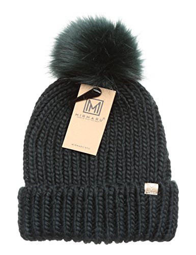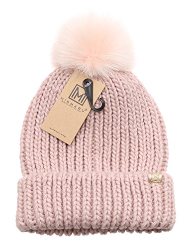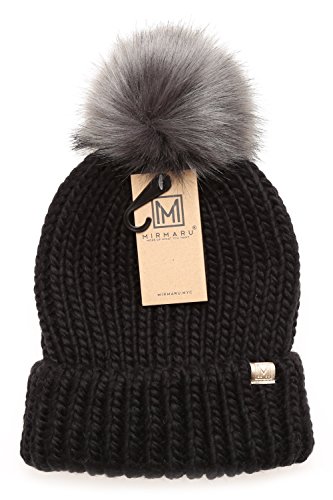 | MIRMARU Cuffed Style Winter Warm Soft knitted Faux Fur Pom Pom Beanie Hat |