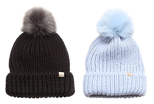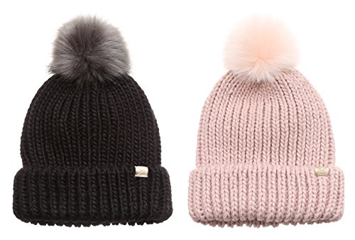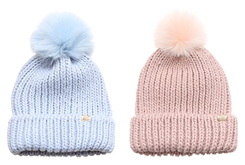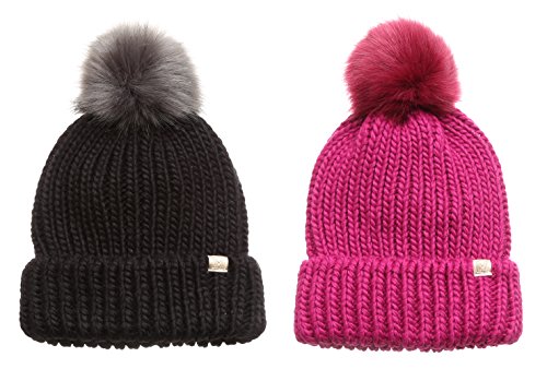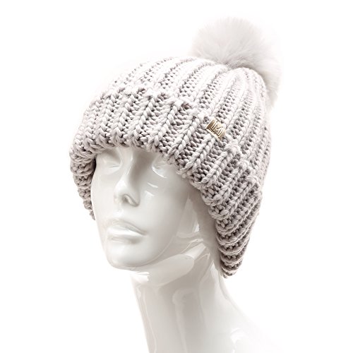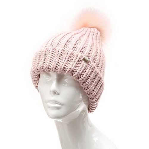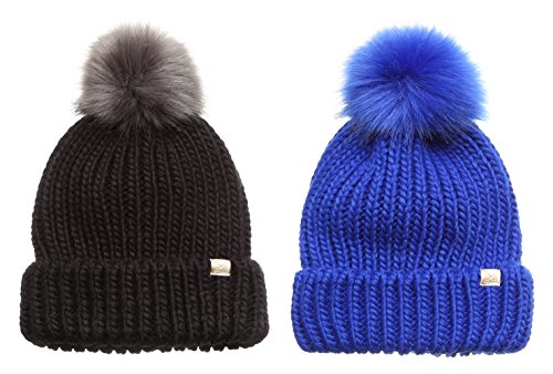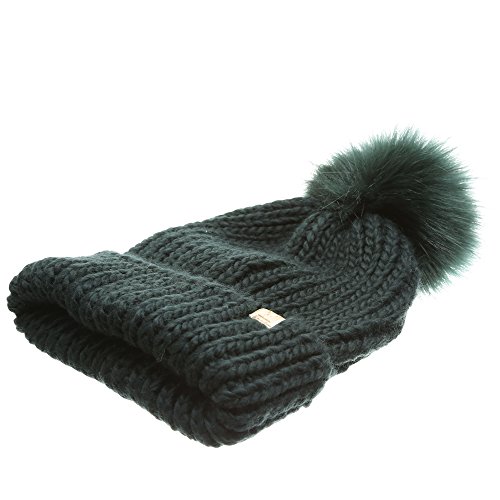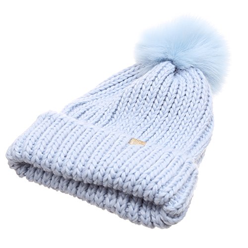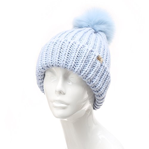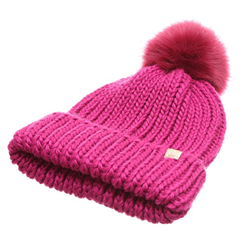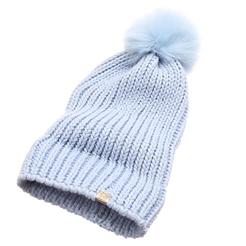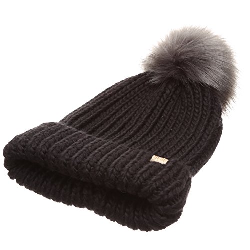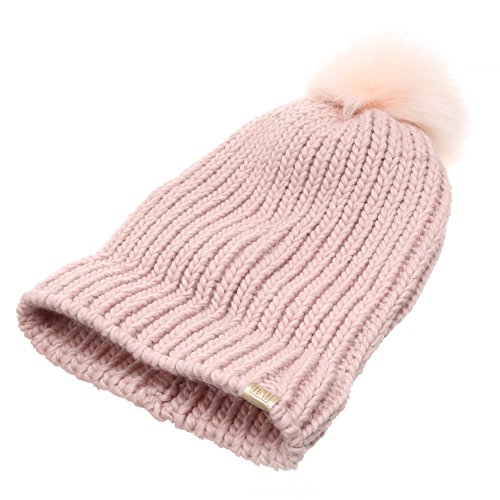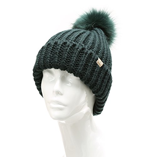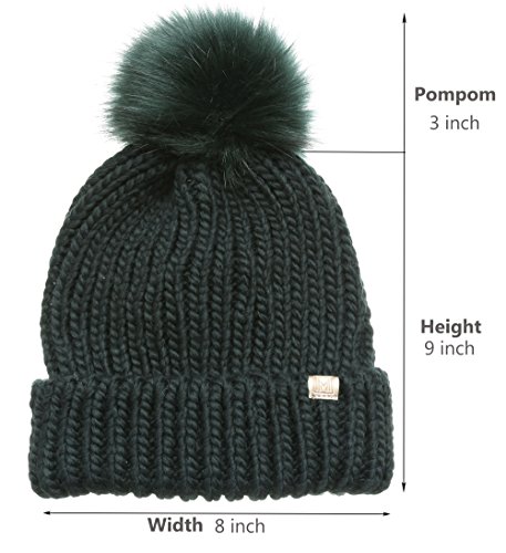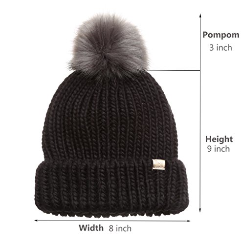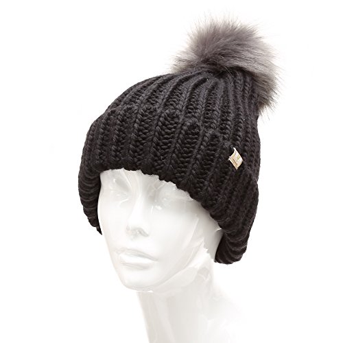 | MIRMARU Cuffed Style Winter Warm Soft knitted Faux Fur Pom Pom Beanie Hat |