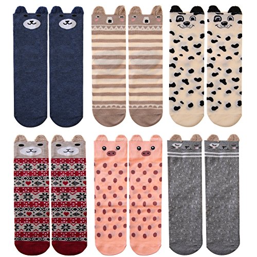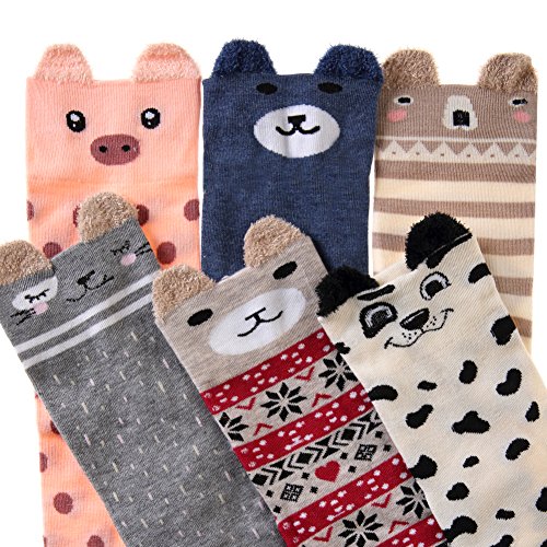 -. Feature : Cute Animal Socks are made of 90% cotton, 8% polyester, 2% spandex. Stretchy, comfortable, lightweight, wearable and sweat-wicking. Soft and gentle care for skin, let you feel comfortable all the day. / Size:One size Fit Most(5-9). / EXCELLENT GIFT CHOICE : Everybody needs more socks. Womens sweet Cotton socks make the perfect present for hikers, outdoor walkers, you also could choose for your girlfriend, daughter, wife, as birthdays, Christmas gift. or as women, girls socks gift. / Hand/Machine Wash Cold Wash inside out and then air dry to reduce shrinkage. / MULTI-FUNCTION : They are high quality, elastic and enhanced cuffs hold socks comfortably in place, you can wear them as office, school, hiking, outdoor, sport, home, work, christmas socks in SP.R.Ing, fall, winter season or in any cold weather areas.