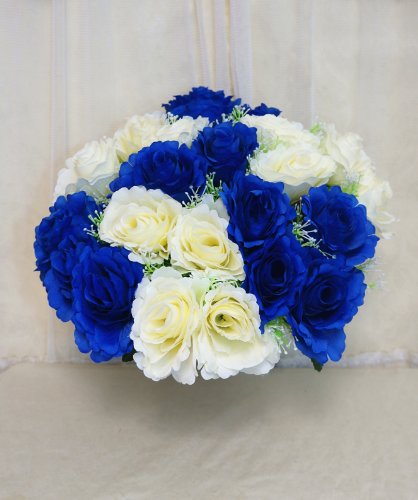 - Title : Sweet Home Deco 15'' Two Dozen Romantic Roses Silk Artificial Bouquet Blue/Cream (24 Stem/24 Flower Heads) (Valentine's Day/wedding/home Decorations) (Blue)
