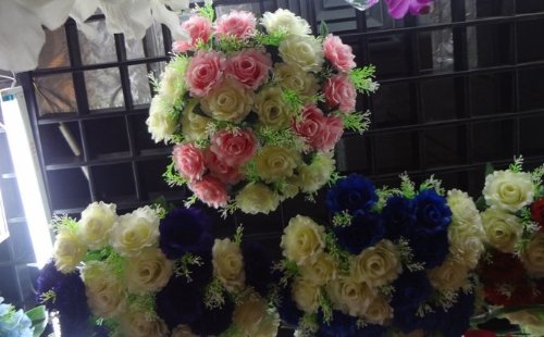 - Feature : Each bouquet has 24 stems w/24 flower heads (2''H x 3''W), white/green plastic grass and silk leaves; / Each bouquet is 15''H x 12''W; / Available in a variety of colors; / The listing price is for one bouquet, no pot included; / Shipping fee is not refundable;