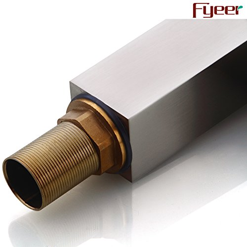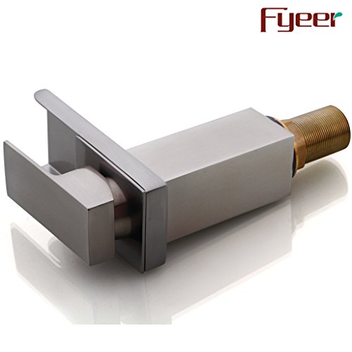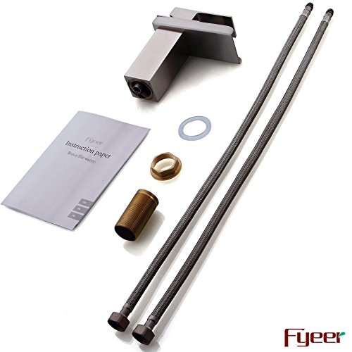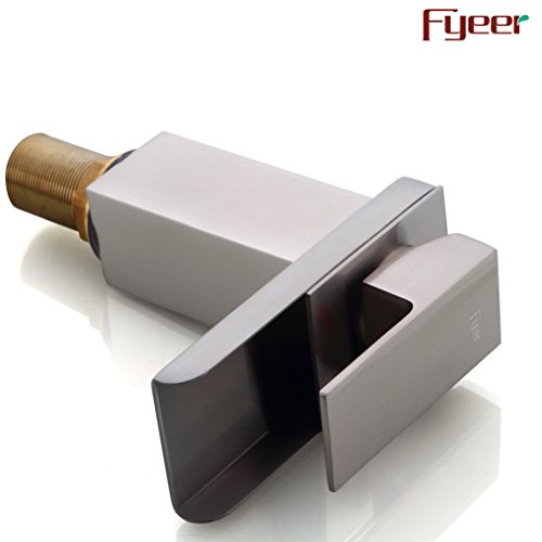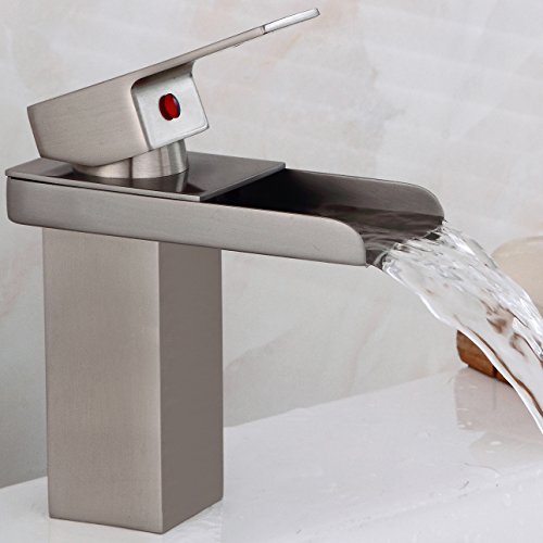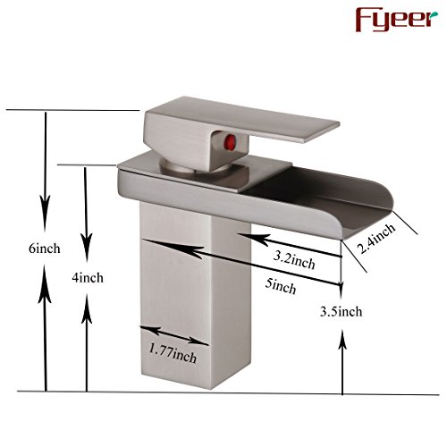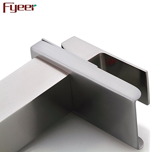 Fyeer Waterfall Style Bathroom Sink Faucet, Single Handle, Nickel Brush Finish, Contemporary Design, Lead Free Certified, Hot & Cold Mixer, Easy Installation