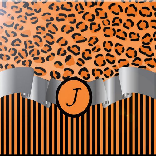 Rikki Knight RK-6intilec-2335 6" X 6" Letter "J" Orange Leopard Print Stripes Monogram Design Ceramic Art Tile