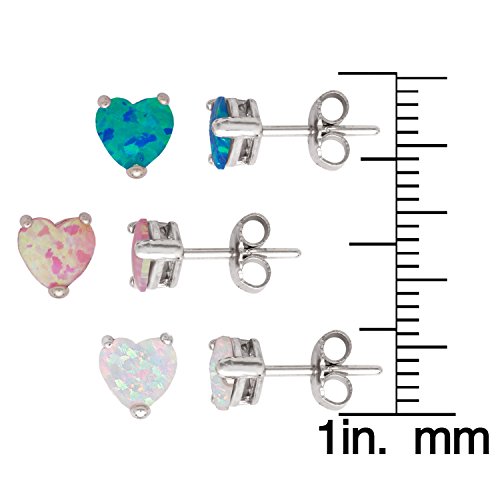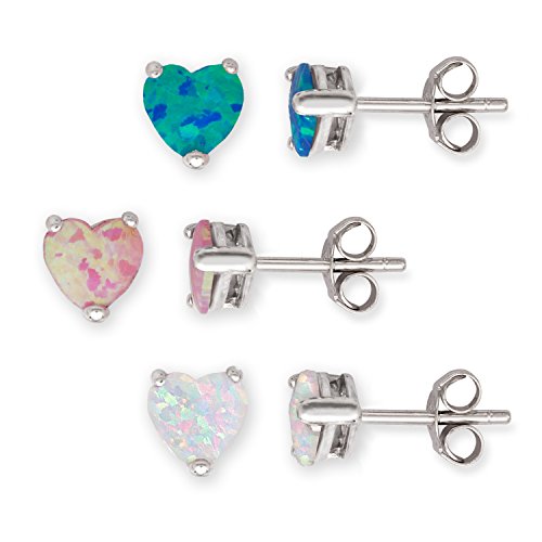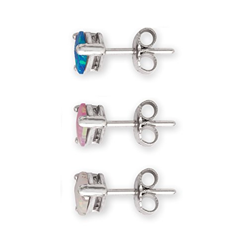 -. Title : Sterling Silver Blue, Pink & White Created Opal Set of 3 Heart 6mm Basket-set Stud Earrings