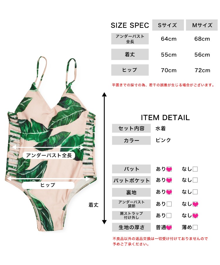 | 商品名 | リーフ柄ピンクワンピースビキニ |