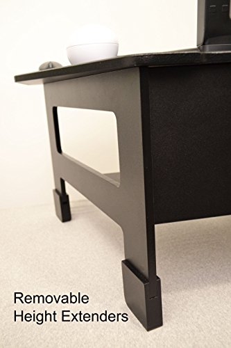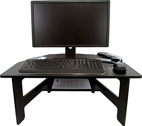 -. Feature : Transforms any sit-down desk into a stand-up desk. Note: This product does not lower to the sitting position and is designed only for standing. / DC100 is made with a sleek wood construction and a durable laminate coating. Back is tapered to fit corner cubicles. / Surface is raised 12 1/2" or 14 1/2" for ergonomic placement of your office equipment and supplies. / Standing is hard on the body. Movement is required. Steppie gives you simple, low-impact movement that engages the stabilizing muscles of your back, core, hips, legs and ankles. / Carefully designed to provide a neutral position between ankles and feet to avoid painful overpronation. Increases focus, attention and overall productivity at work.