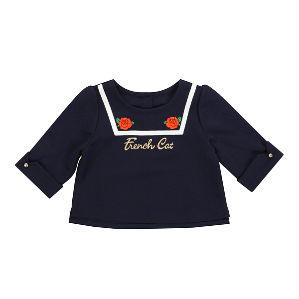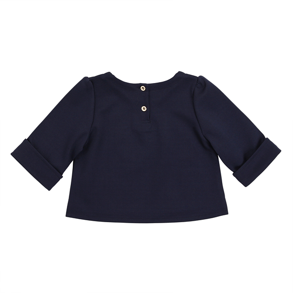 상세설명-네이비칼라에 트롭탑 스타일로 밑에 스퀘어프린트 스커트(Q64DDS110)와 코디해서 입으면 예쁩니다