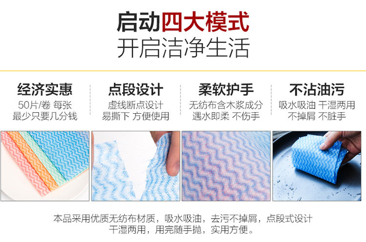 厨房免洗环保抹布可撕式断点擦桌布无纺布洗碗巾不沾油吸水百洁布