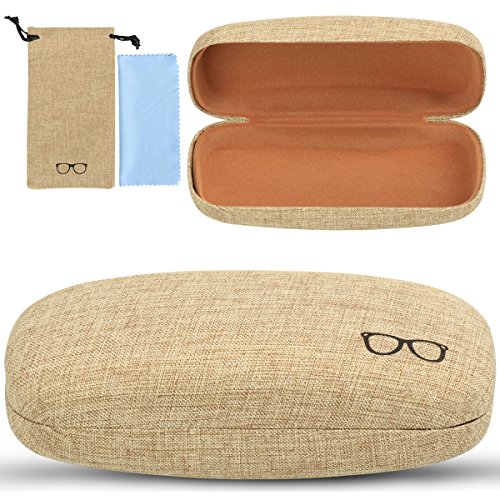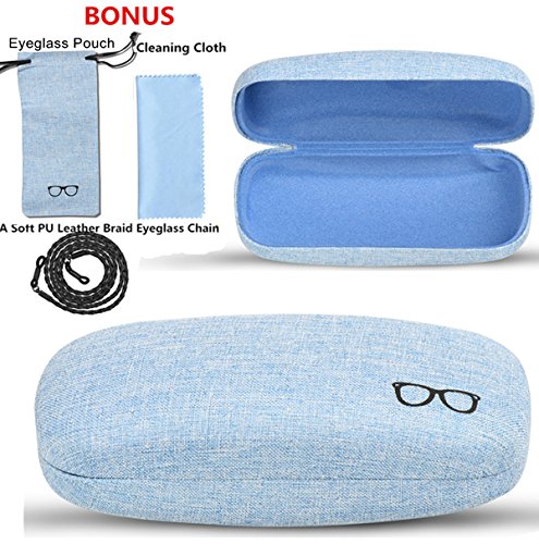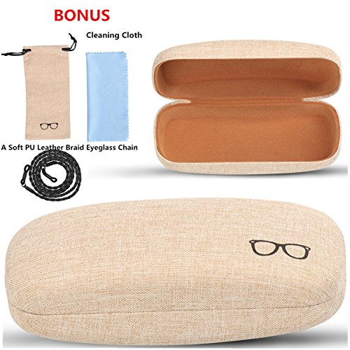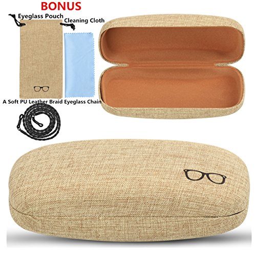 Studio : xhorizon Publisher : xhorizon Binding : Apparel Product Description xhorizon Hard Shell Glasses Case, Linen Fabric Case for Eyeglasses and Sunglasses with Bonus - Eyeglass Pouch A Large Cleaning Cloth A PU Leather Braid Eyeglass Chain Product Features: -Hard-shell, structured eyeglass case is lined with linen fabric, comes with sunglass or eyeglass drawstring pouch, a large size cleaning cloth and a soft PU leather braid eyeglass chain. -For the size details, please refer to our size photo in the listing. This case fits most frames - both kids and adults.Case fits most eyeglass and sunglass, drawstring pouch fits eyeglasses and sunglasses. -This case mainly is makes with the linen fabric.Interior is lined and will not scratch up the lenses. -It is a perfect gift for men, women, and children.? Package includes: 1 * Sunglass or Eyeglass Hard Case Cover 1 * Eyeglass or Sunglass Pouch 1 * Large Size Cleaning Cloth 1* PU Leather Braid Eyeglass Chain Please note: Choose xhorizon choose a better lifestyle! 0