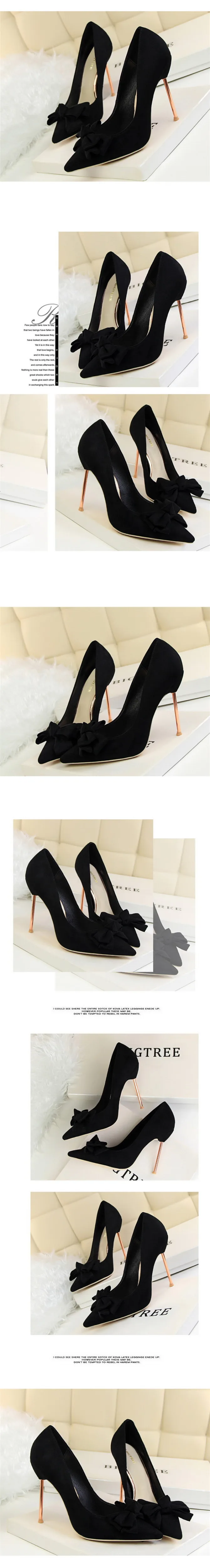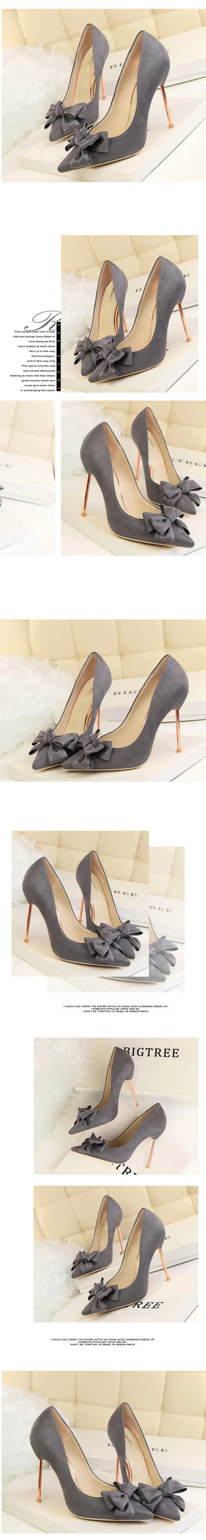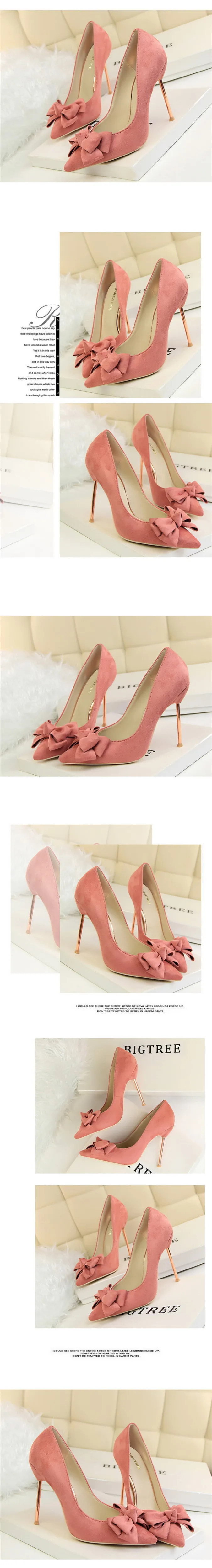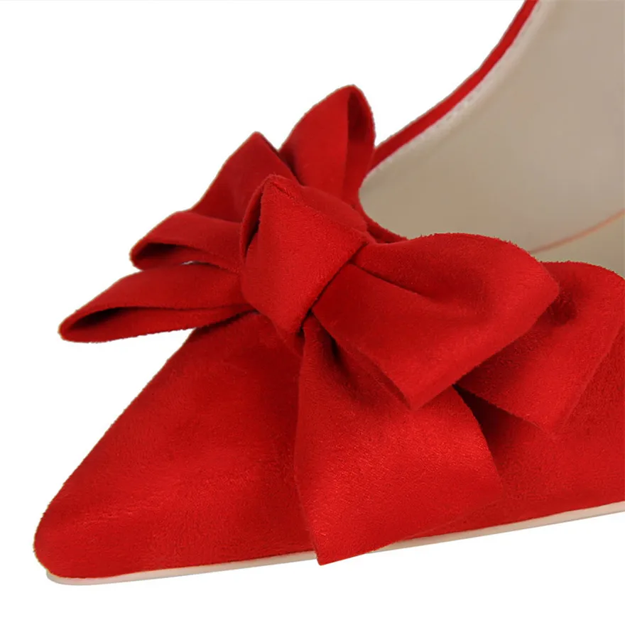 Item:Fashion Solid Flock Pointed Toe Sweet Bowtie Shallow OL Office Shoes