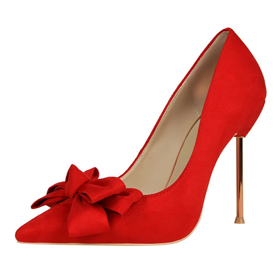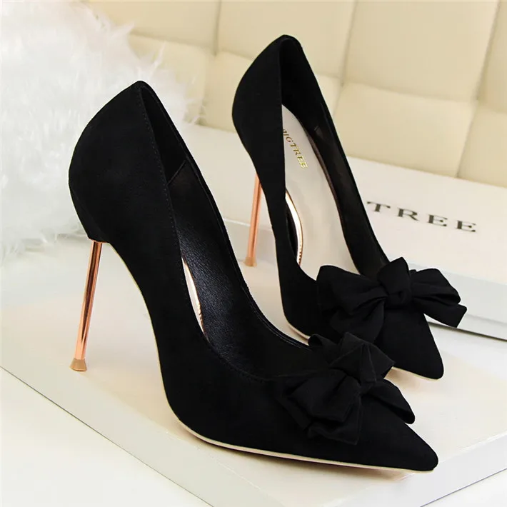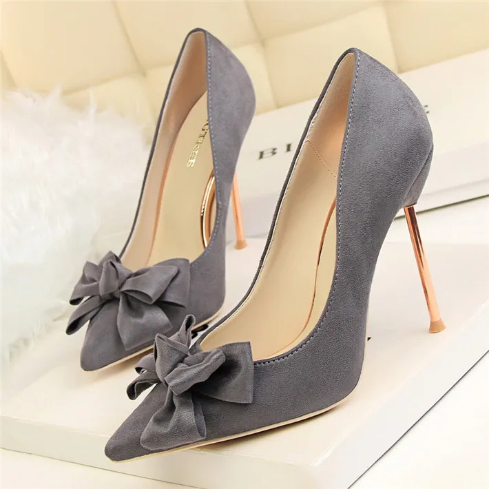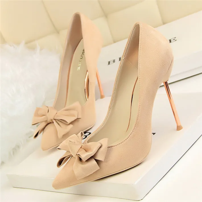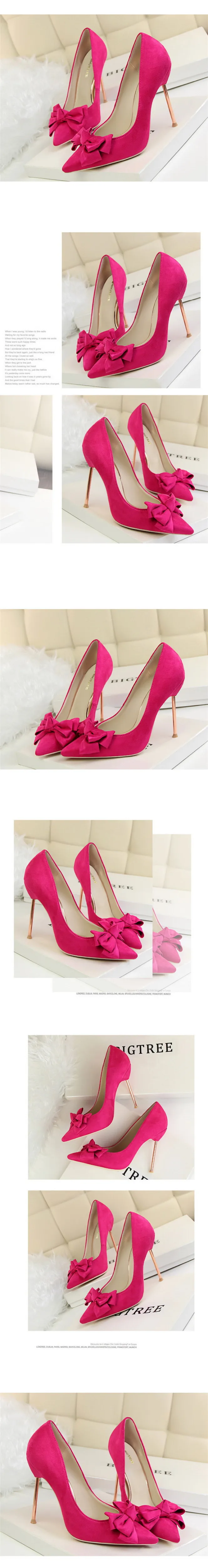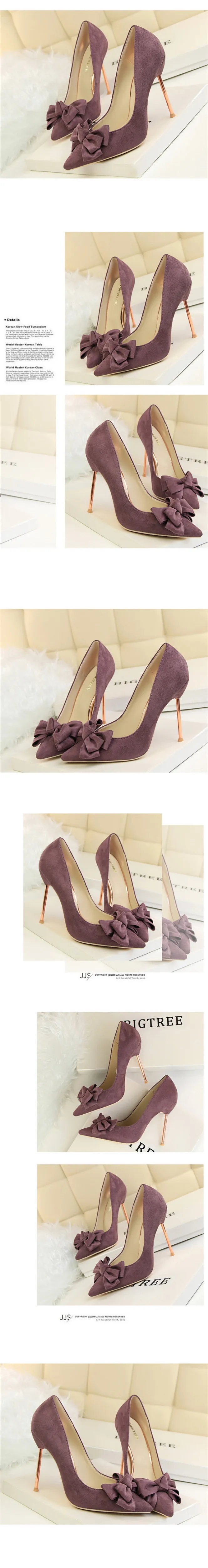Item:Fashion Solid Flock Pointed Toe Sweet Bowtie Shallow OL Office Shoes