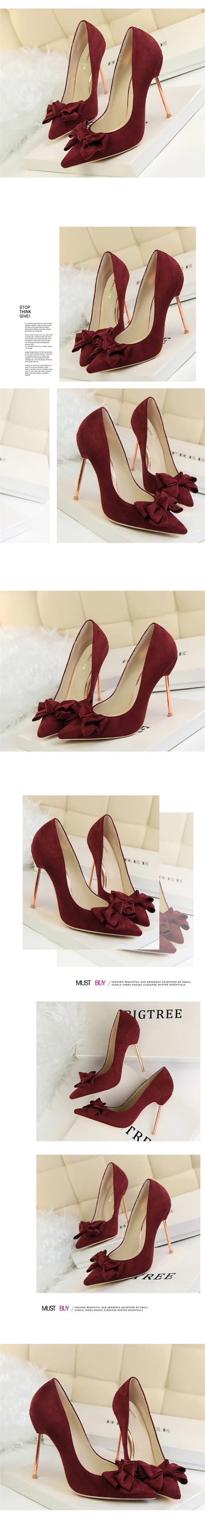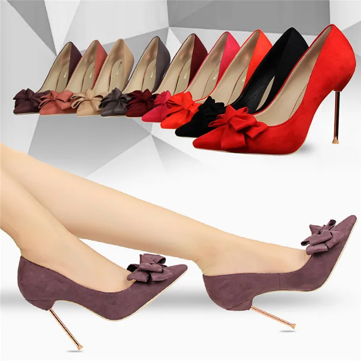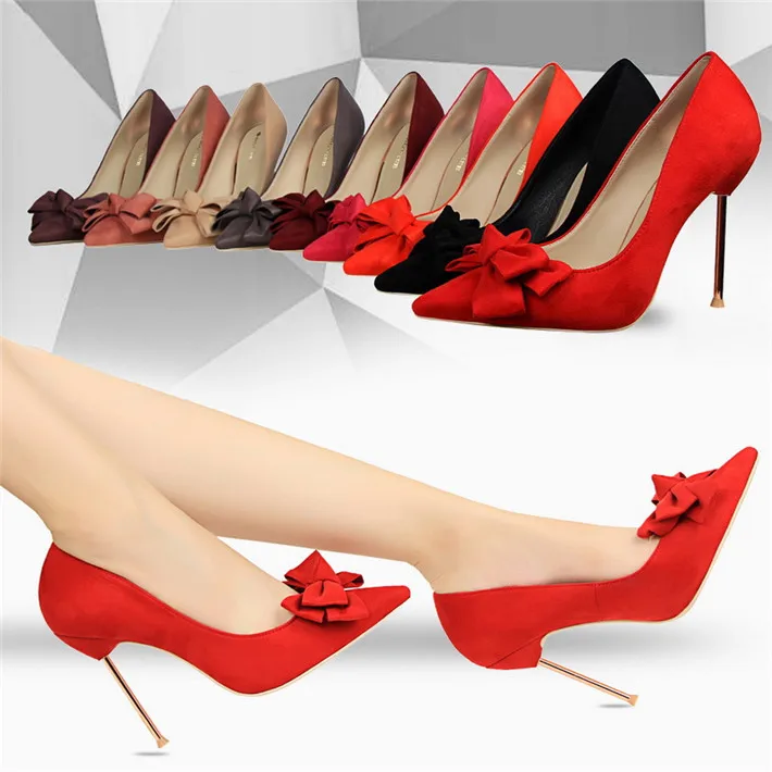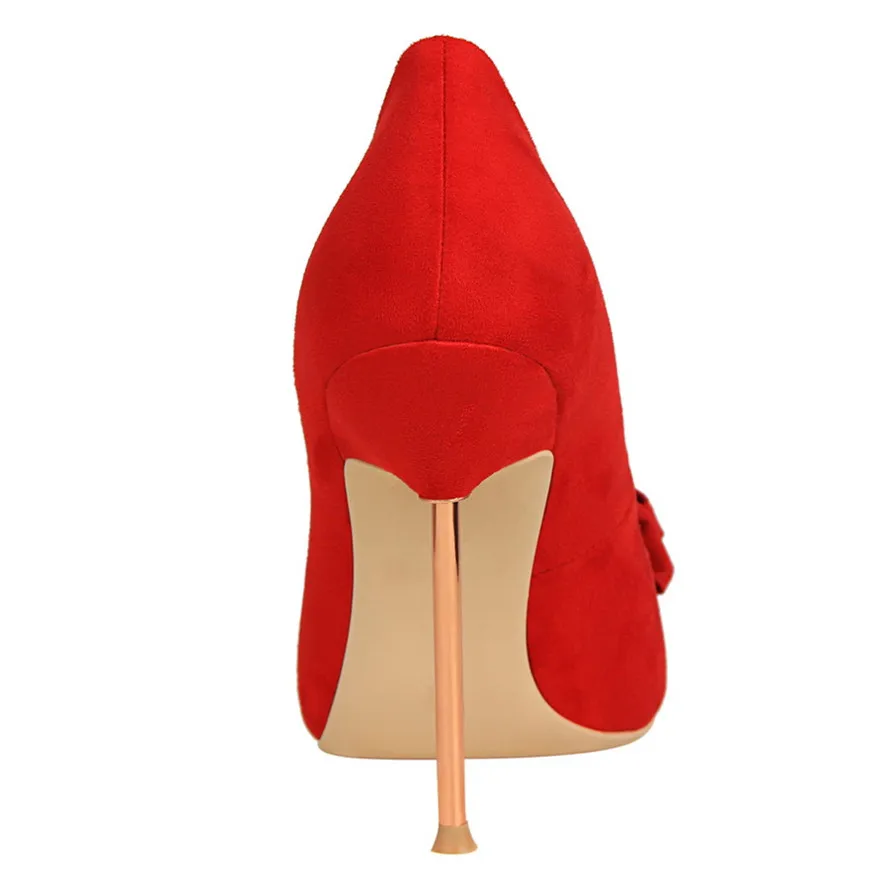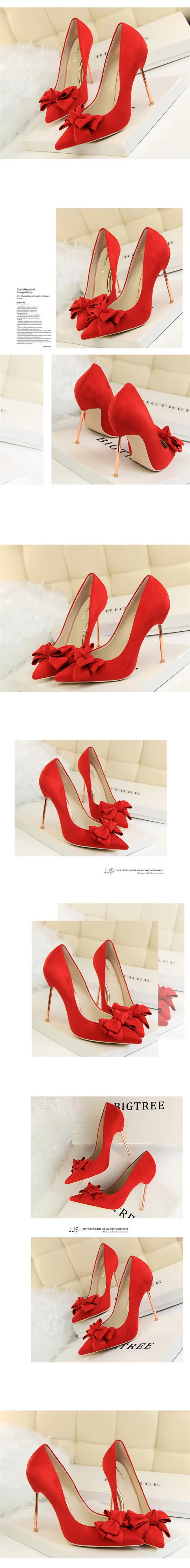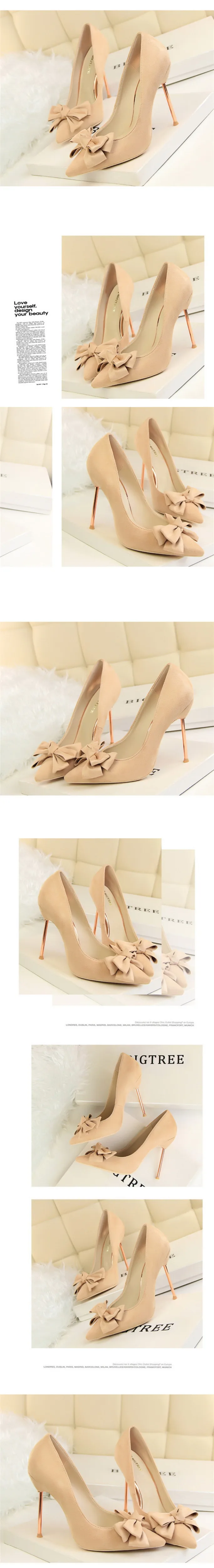 Item:Fashion Solid Flock Pointed Toe Sweet Bowtie Shallow OL Office Shoes