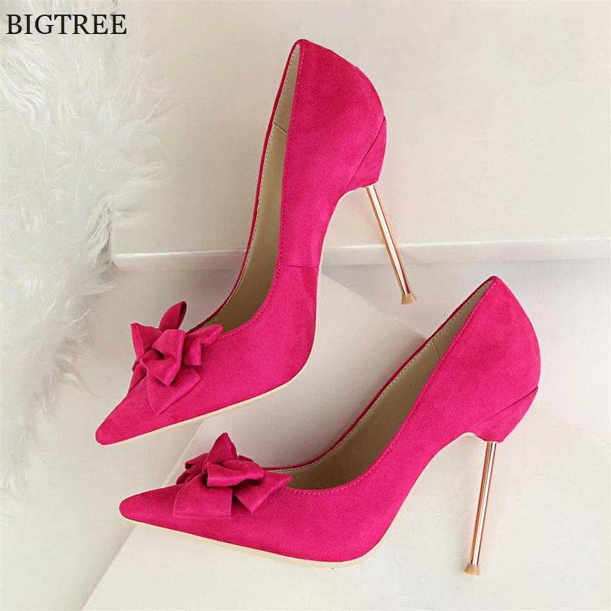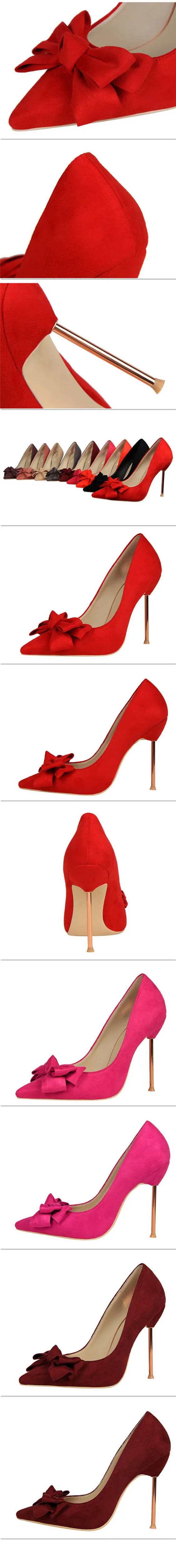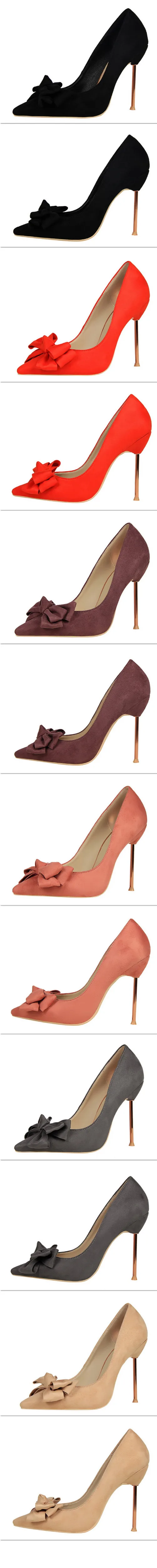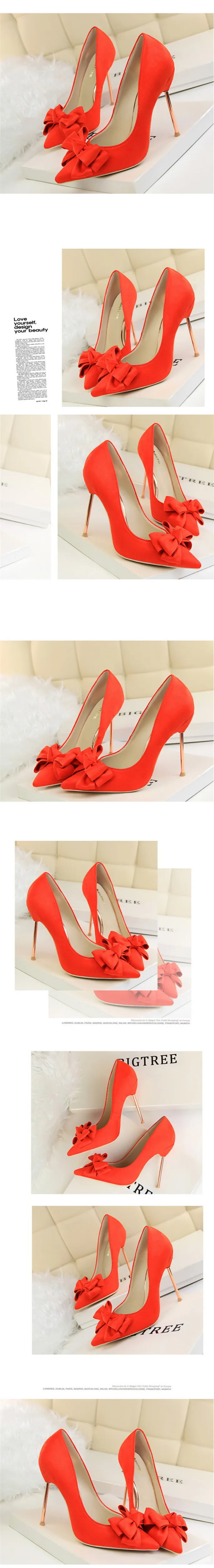 Item:Fashion Solid Flock Pointed Toe Sweet Bowtie Shallow OL Office Shoes