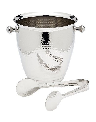 -. Title : Godinger Hammered Ice Bucket with Tong, Silver