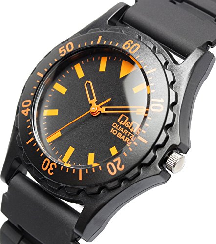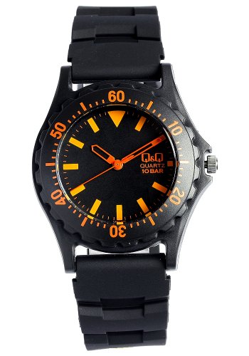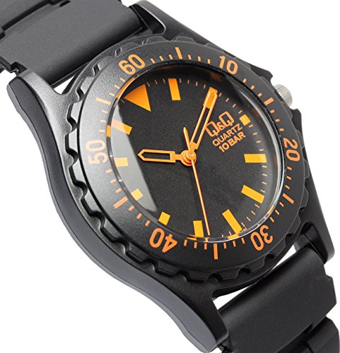 시티즌 Q&Q [시티즌 큐 앤드 큐]CITIZEN Q&Q 손목시계 아날로그 표시 컬러 워치 러버 블랙 오렌지 다이버스 디자인 맨즈 레이디스 키즈