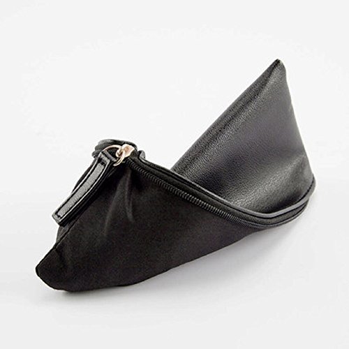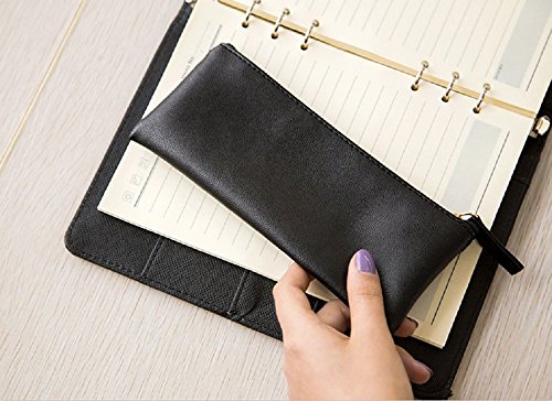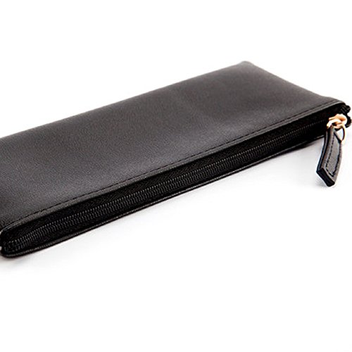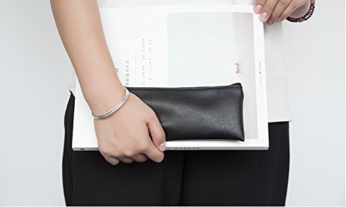 Funnylive Classic Pure Black PU Leather Pen Bag Cosmetic Bag Handbag Simple Student Pencil Case (Pure black)