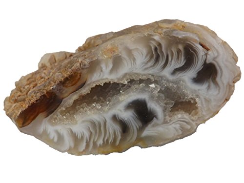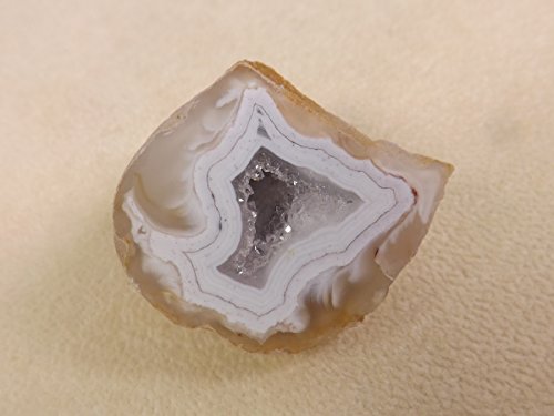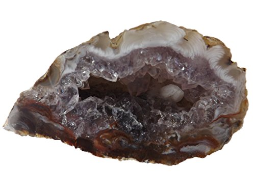 AGATE GEODE WITH CRYSTALS. One Small Polished Oco Nodule Half, a Natural Quartz Filled Stone from Brazil. Miniature-size Specimen for Collectors/Crystal/Mineral Lovers for Home Office Accent, Display