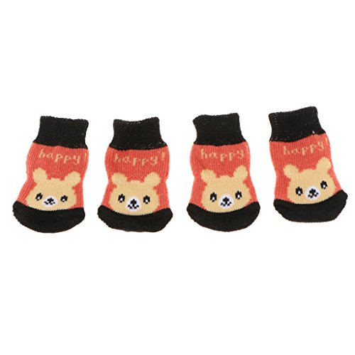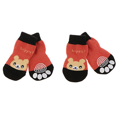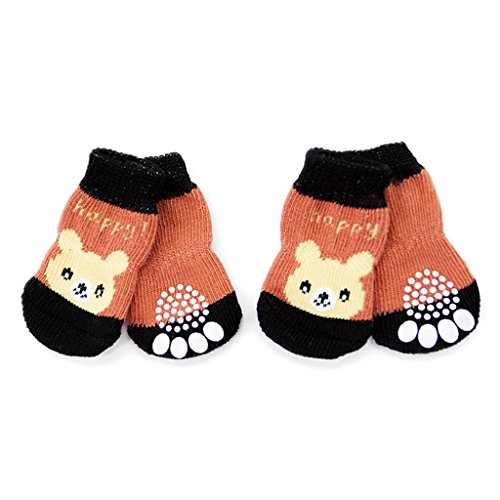 -. Feature : Made from cotton, soft and comfortable to wear. / Anti-slip Print on the soles to provide extra traction on slippery surfaces. / Waterproof bottom design, these socks not only can indoor wear, but also can outdoor wear, suitable for outdoor exercise, help to protect pets paw. / With rubber reinforcement design, socks will not fall off easily, pets will feel more comfortable. / Breathable knit socks can also prevent home floor, furniture or other home items being scratched by pets.