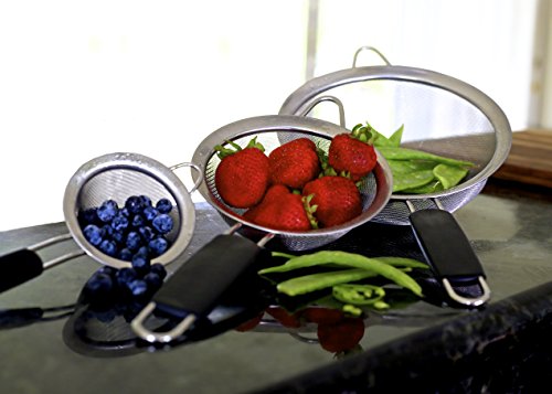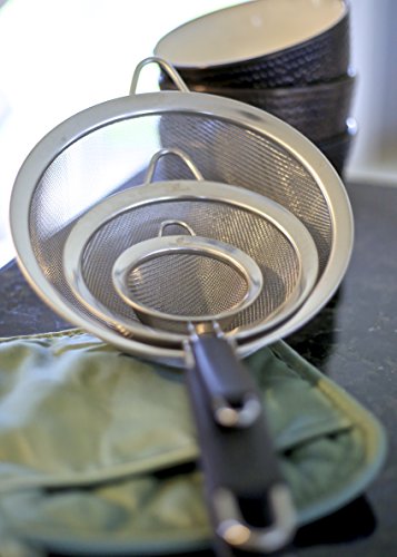 THE PERFECT SIZE FOR ANY STRAINING TASK -Be more efficient in the kitchen and always have the perfect size strainer when you need it! Get all 3 of our premium strainers (7-5/8", 5 1/2" and 3") for a bargain price and be ready for any task at-hand.
