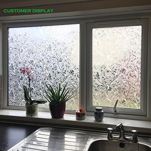 Bloss Tulip Window Film Privacy Window Films Window Decals PVC Window Cling Film Anti-UV Static Cling Non Adhesive for Home Office,17.7 by 78.7 inches