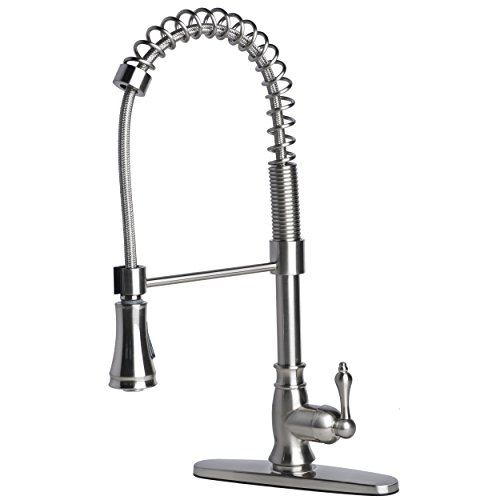 Builders Shoppe 1411SS 21" High Single Handle Spring Pull-Down Kitchen Faucet Stainless Steel Finish