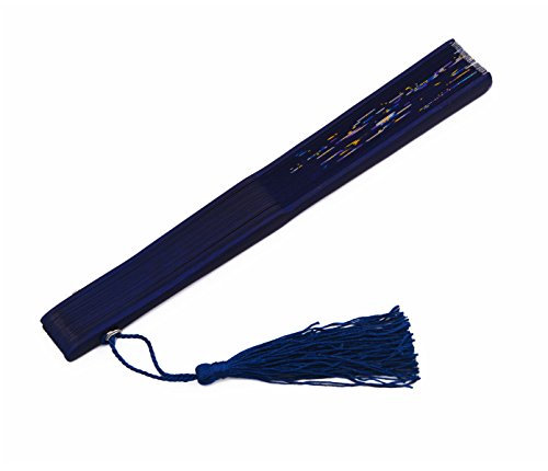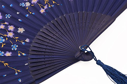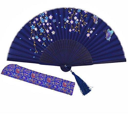 Amajiji Women Hand Held Silk Folding Fans with Bamboo Frame (Blue)