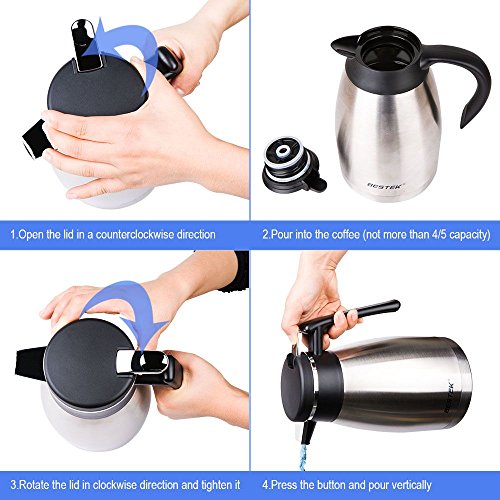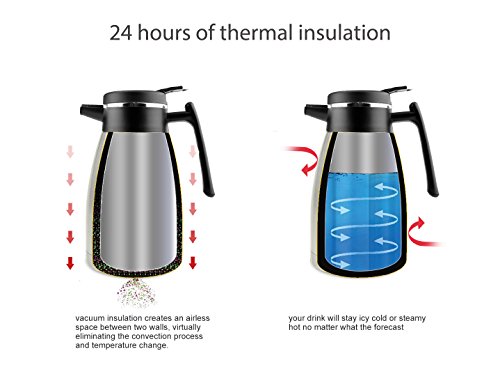 Double Wall Stainless Steel Vacuum Insulation Beverages Carafe: Made from durable 18/8 stainless steel, keep your coffee, water, milk, juice and tea warm all day