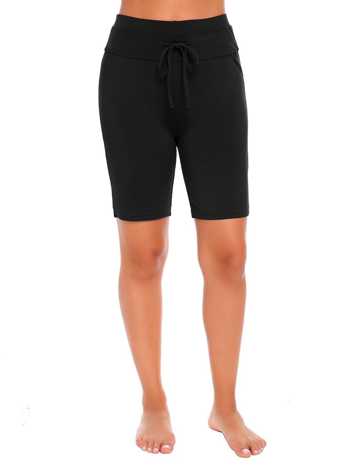 Attractive Looking - high waist for good shape of your curve,making you stand out;decorated drawstring at wiastband for good fit or tighten the shorts up if needed;one back pocket for storage of essentials like keys,phone etc;full coverage stretch swim bottom offer sll-round movement and be a good pair with any tops