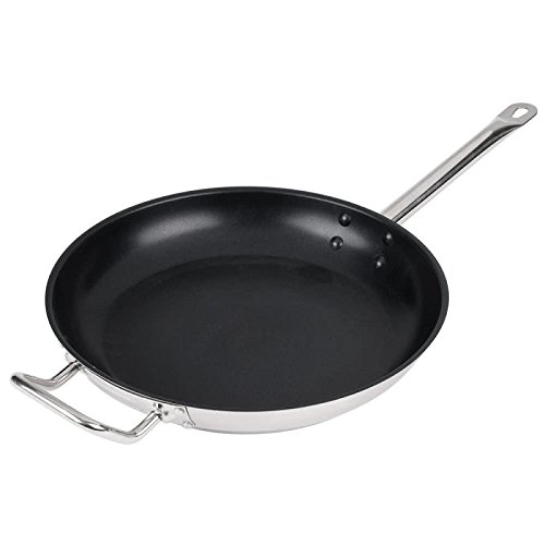 Frying Pans are a necessity in any commercial kitchen. They are ideal for dishes that require little oil or butter. They also work great for foods that involve a lot of flipping, such as pancakes or omelets. Royal Industries offers you a great induction-ready fry pan (ROY SS RFP 14 S) that will be helpful in your food preparations. It is constructed from stainless steel. It features excellent anti-corrosive properties, maximum magnetic conductivity for induction cooking, and 3-ply encapsulated 4mm aluminum core bottoms for even heating. It also features a non-stick coating that prevents food from sticking to its surface, and it is easy to clean. This frying pan is also scratch resistant giving you the complete freedom when it comes to cooking your favorite dishes on this frying pan.Feature