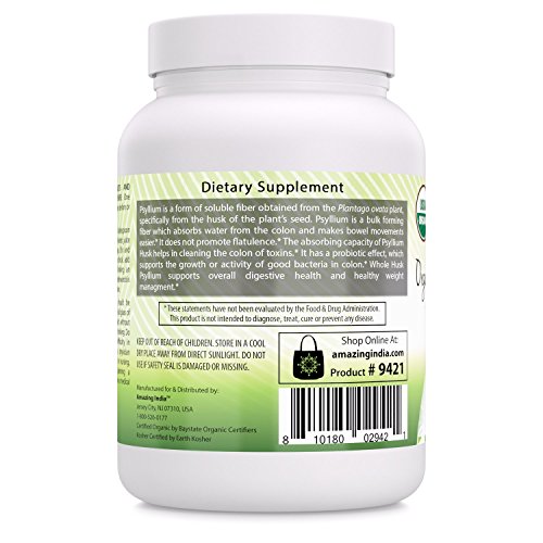 * BENEFITS OF WHOLE HUSK PSYLLIUM Amazing India Whole Husk Psyllium is nature's finest remedy for digestive health and to cleanse the colon of toxins. Psyllium is a bulk forming fiber which absorbs water from the colon and makes bowl movement easier. It may also support healthy weight management.